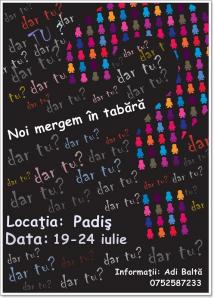 Gandeste-te bine ce faci cu timpul tau liber vara aceasta, mai ales in perioada 19-24 IULIE 2010. Petrece timp de calitate cu tinerii devotati in TABARA de laPADIS. Pretul taberei este de 300 lei (cazare, 3 mese pe zi- + accesul la PARCUL DE AVENTURA), transportul nu este inclus in pret.