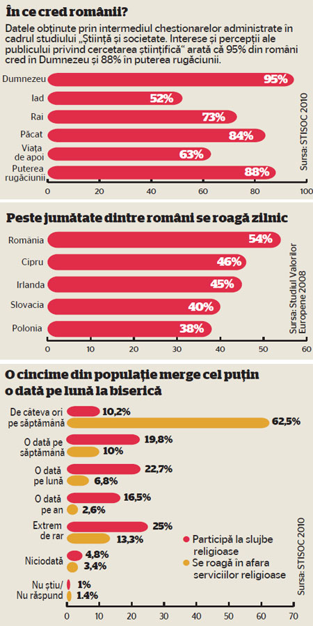Share Facebook Twitter LinkedIn Pinterest Email Potrivit unui sondaj se arată că 95% dintre români cred în Dumnezeu. 52% cred în Iad 73% cred în Rai Apreciază:Apreciază Încarc...