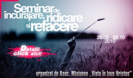 In perioada 29.09-02.10.2010 va avea loc în localitatea Vâlcelele Bune, nr. 116, jud. Hunedoara, un seminar dedicat tuturor celor care doresc să petreacă un timp extraordinar în prezența lui Dumnezeu. Tema acestui seminar este: Încurajare, Ridicare și Refacere.