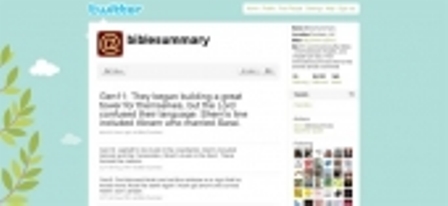 Recent un lider de închinare dintr-o biserică și-a pus drept scop să pună Biblia pe twitter, și anume să pună în fiecare zi cite un capitol. Chris Juby în vîrstă de 30 ani și-a început proclamarea modernă a Bibliei pe data de 8 August. El se așteaptă să termine în Noiembrie 2010. (Christiantoday)