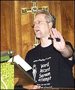 Un cleric de 46 de ani din nord-vestul Angliei a intrat în Cartea Recordurilor, după ce a rostit cea mai lungă predica din lume, întinsă pe parcursul a 28 de ore şi 45 de minute, relatează AFP. Reverendul Chris Sterry, de la biserica din localitatea Whalley, şi-a început predica dimineaţa, la ora locala 6.30, şi a încheiat-o a doua zi, la 11.15 ceea ce i-a permis să bată cu o ora şi 15 minute precedentul record mondial la categoria “cea mai lungă predică fară consultarea notitelor”. Deşi intervalul predici reprezintă în sine un record, cele mai spectaculoase au fost condiţiile impuse. Având dreptul la o pauza de 15 minute la fiecare 8 ore, predicatorului i s-a interzis să se repete, să consulte notiţe, să vorbeasca incoerent sau să faca pauze mai mari de 10 secunde. Reverendul Chris Sterry intenţiona să vorbeasca timp de 36 de ore, bazându-se pe faptul că ştie pe dinafara primele 4 cărţi ale Vechiului Testament, însă a încheiat textul cu mult înainte de ora prevăzută.