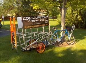 Stephen e un om care-si traieste credinta in Mantuitorul in circumstante foarte dificile. El a suferit pe nedrept, i-au fost incalcate drepturile si libertatile personale si a fost fortat sa ramana fara adapost, pentru nici o alta cauza, decat din cauza coruptiei, in aceste vremuri cand ascensiunea raului, a coruptiei, a confuziei si manipularea oamnenilor a ajuns la proportii ingrijoratoare. Ca urmare, el a inceput un documentar despre coruptie si cum aceasta afecteaza viata oamenilor, asa ca el va vorbi cu oameni despre aceasta problema majora, ii va provoaca sa cunoasca adevarul si sa demaste coruptia, si ii va incuraja, dandu-le asigurarea ca in spatele tuturor celor care sufera pe nedrept sta Isus Cristos care le da taria necesara sa iasa din toate acestea victoriosi. In acest scop el a inceput joi 23 septembrie 2010, o călătorie la Washinton cu bicicleta si cu cartul sau special denumit simbolic “CORUPTION CRIPPLES”, construit sugestiv in totalitate din carje. Nu ajunge sa mergem la biserica sau sa predicam Evanghelia, trebuie sa denuntam sistemele rele, caci pacatului trebuie sa i se spuna pe nume. Stephen spune: “ că multe căi din viaţă nu par a fi corecte, ci sunt chiar corupte. Dar există speranţă chiar şi in greutăţile şi confuzia cu care te confrunti, nu esti singur. Dumnezeu, este acolo cu tine! Este mult rău in lumea de azi care aduce confuzie si din cauza aceasta oamenii pot crede ca viata nu este corecta. Amintiti-va ca multi s-au luptat mai mult, cu confruntarea răului. Persevereaza in a fi devotat lui Dumnezeu si păstreaza-ti încrederea şi rugăciunea in Dumnezeu. El nu va pleca de langa tine. Aici poti avea probleme, dar nu esti singur. Demasca confuzia şi cunoaste adevărul Lui. Multi profita sau par să faca bine, dar te-ai gândit la ceea ce a le-a luat pentru a ajunge acolo? Unii merg pe calea bunătatii, în timp ce altii … Ne rugam sa nu fiti din aceea care ajuta raul si corupţia, si care se ascund în spatele unei măşti de bunătate. Nu este vorba despre ceea ce poti obţine de la existenţa din această lume, dar despre dedicarea ta pentru adevărul lui Dumnezeu şi ceea ce El iti poate da – Viaţă Veşnică. Fii dispus să faci ce e drept chiar şi atunci când aceasta poate însemna sa pierzi totul în această existenţă. Urmaţi Sfanta Scriptura; Urmaţi pe Dumnezeu, nu corupţia omului!”.