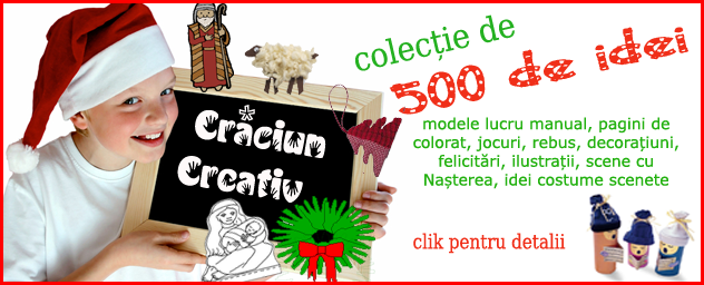 Lucrezi la Scoala Duminicala? Eşti învăţător sau educator într-o scoală normală? Vrei idei de scenete pentru serbări sau modele de lucru manual de Crăciun pentru activităţile cu copiii? Te interesează materiale pentru a dezvolta creativitatea şi a ocupa eficient timpul copiilor tăi de acasă? Îţi place arta şi vrei să afli cum poţi confecţiona decoraţiuni de Crăciun din materiale refolosibile sau cu costuri minime?