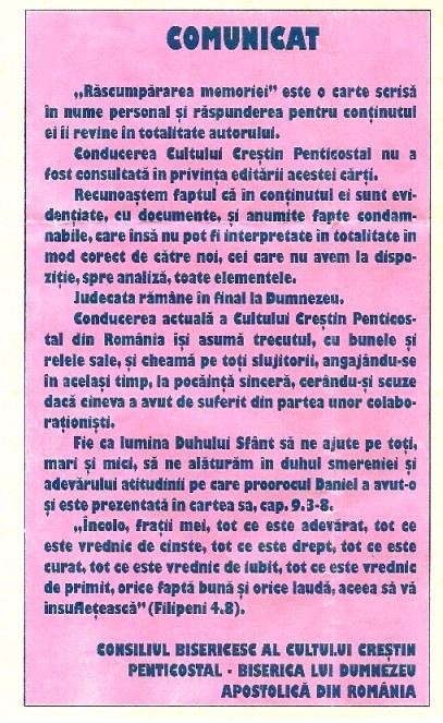 SINCER MA ASTEPTAM LA O ALTA REACTIE DIN PARTEA CONSILIULUI BISERICESC,,,!! E FOARTE USOR SA SE ASCUNDA INFORMATORII SI TURNATORII… IN SPATELE SLOGANURILOR ..PACIFISTE…!!! . TOT ASA VOM MERGE INCA 20 DE ANI..?? MANA IN MANA CU …. TRADATORII..??? NU SE VREA LUMINA IN CAZUL ACESTA.. ASTA E..!!! POATE VIITOAREA CONDUCERE…!! DOMNUL SA BINECUVINTEZE TRADATORII…!!