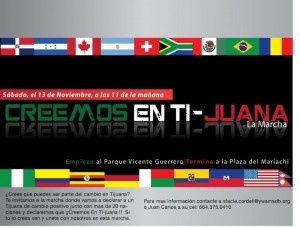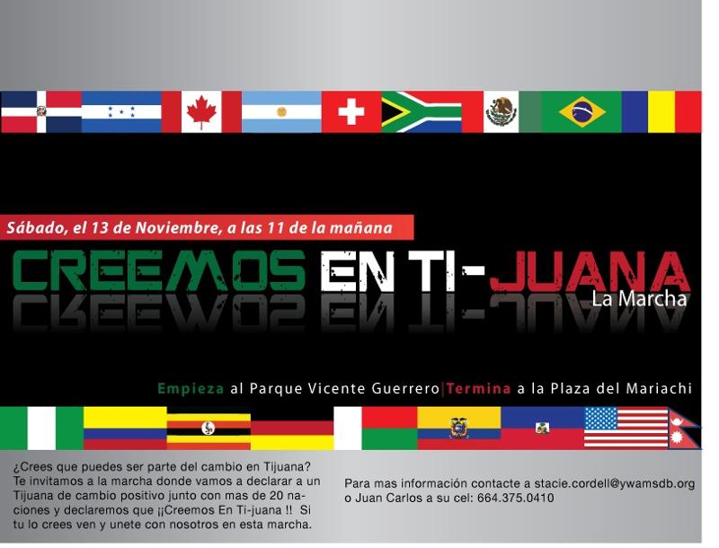 Dorim sa va informam ca pe data de 13 Noiembrie va avea loc in Tijuana, Mexic o Parada a Pacii. Vom fi reprezentati din 20-30 de natiuni (eu impreuna cu sotia mea vom reprezenta Romania). In cadrul acestei parade vor participa mai multe organizatii nationale si internationale si biserici locale. Prin acesta parada dorim sa aratam lumii ca Tijuana nu este ceea ce pare, in ciuda faptului ca se zvoneste ca ar fi unul din cele mai periculoase orase. Vrem sa declaram o Tijuana cu schimbari pozitive. Noi credem intr-un viitor, nu al drogurilor sau al criminalitatii ci intr-un oras al pacii.