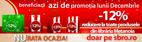 Share Facebook Twitter LinkedIn Pinterest Email Din 14 decembrie, pana in 20 decembrie Societatea Biblica din Romania va ofera o reducere de 12% la toate produsele Librariei Metanoia. Aici gasiti cadoul potrivit. Accesati www.sbro.ro sau sunati la 0359-800836 si comandati acum. Apreciază:Apreciază Încarc...