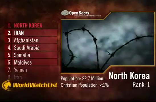 Miercuri, organizaţia a publicat 2011 lista cu 50 ţări în care există persecuţie asupră creştinilor. Coreea de Nord se află în fruntea listei pentru al nouălea an consecutiv, dar 8 din primele 10 sunt ţări islamice. Aceste naţiuni includ Iran, Afganistan, Arabia Saudită şi Somalia.