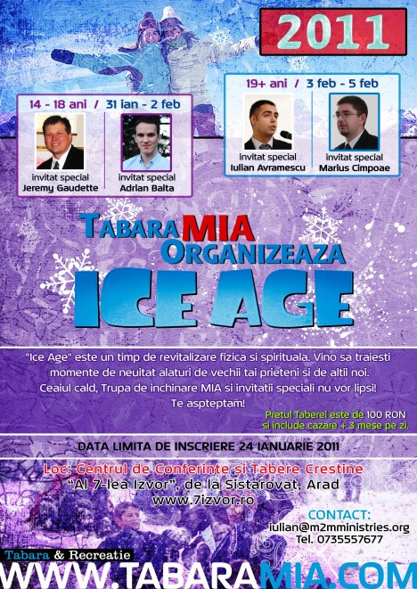 În perioada 31 ianuarie – 2 februarie 2011 (14-18 ani) respectiv 3 februarie- 5 februarie (19 + ani…) la Şiştarovăţ se organizează o tabără de iarna pentru adolescenţi şi tineri.