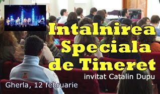 Sâmbătă, 12 februarie 2011, are loc Întâlnirea Specială de Tineret în Gherla, judetul Cluj. Programul îi are ca inviţati pe Cătălin Dupu şi o trupa muzicală din Cluj. Evenimentul are loc la Biserica Crestină Baptistă, Vestea Bună, de la orele 17.00. Sunt invitaţi tinerii şi familiile tinere din Gherla şi judeţul Cluj, intrarea fiind libera.