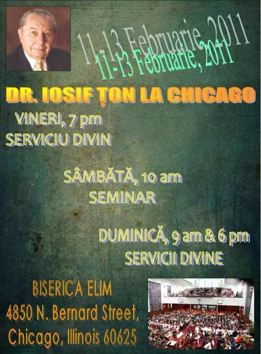 Începând de astăzi, dr. Iosif Țon va susține o serie de mesaje la Biserica Elim din Chicago.