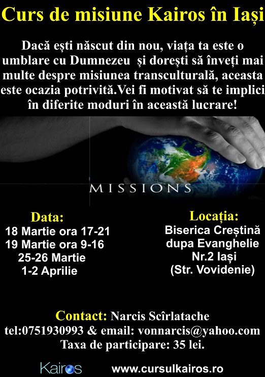 Dacă eşti născut din nou,viaţa ta este o umblare cu Dumnezeu şi doreşti să înveţi mai multe despre misiunea transculturală, aceasta este ocazia potrivită. Vei fi motivat să te implici în diferite moduri în această lucrare!