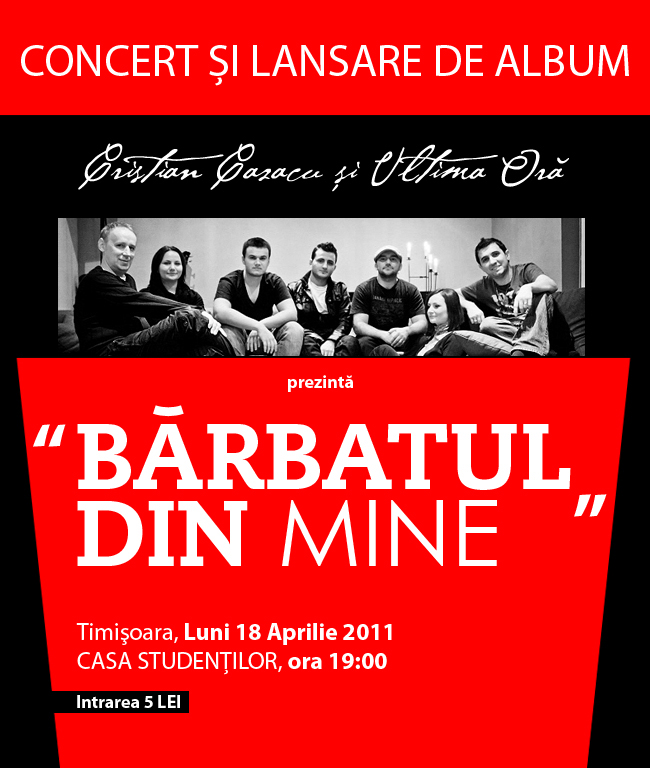 Luni, 18 Aprilie, Cristi Cazacu şi prietenii din formaţia “Ultima Oră” va susţine un concert şi lansare de album cu numele “Bărbatul din mine”
