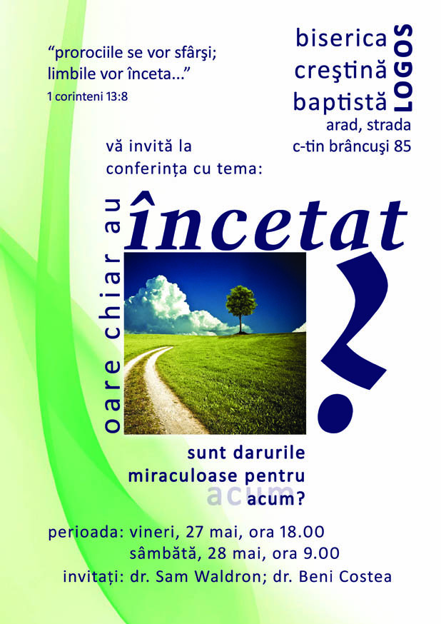 Sunt onorat să vă invit la o noua conferinta la Biserica Baptista Logos din Arad, care se va desfăşura în zilele de 27-28 Mai 2011.