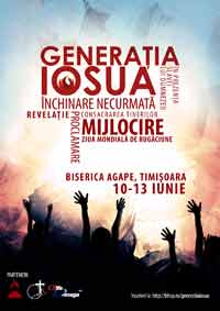 Vă invităm să participați la Conferința „GENERAȚIA IOSUA” – În prezența Slavei Lui Dumnezeu”, prin lucrarea sfințitoare a Duhului Sfânt, Rugăciune și Post, Laudă și Închinare neîntreruptă și Proclamarea întregului Cuvânt al lui Dumnezeu, care va avea loc în zilele de 10-13 iunie, la Timișoara.