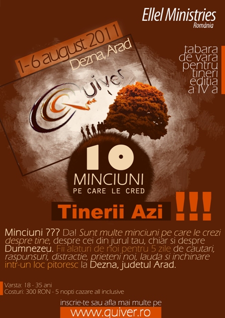 În perioada 1-6 august, 2011 Misiunea Ellel România invită tinerii cu vârsta cuprinsă între 18-35 ani la Dezna, Arad. Motivul invitaţiei este cea de-a IV-a ediţie a taberei de vară Quiver 2011.