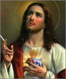 Creştinii din statul indian Meghalaya, situat în nord-estul Indiei sunt foarte revoltaţi după ce au descoperit o imagine care îl înfăţişează pe Isus Hristos tinând într-o mână o cutie de bere şi în cealaltă o ţigară.