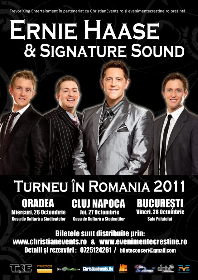 Concertul Ernie Haase & Signature Sound din România se va desfășura în luna octombrie, 2011, după următorul program: