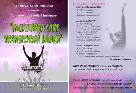 Evenimentul va avea loc în perioada 24-26 august 2011 în Biserica “Agape” din Timişoara.