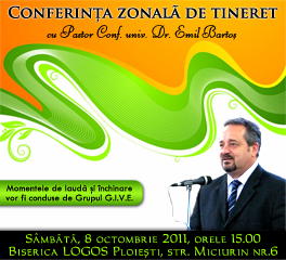 Sâmbătă, 8 octombrie 2011, de la orele 15:00 va începe, în Ploieşti, Conferinţa zonală de tineret.