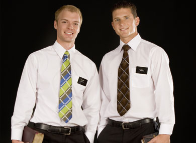 Îi puteți recunoaște după modul în care se îmbracă și după ecusoanele din piept, care îi numesc “elder” sau “sora” în biserica lui Isus