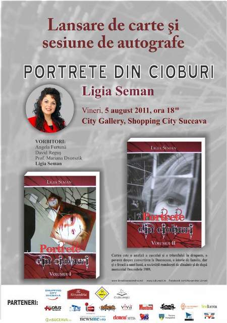O lansare de carte ce poartă un mesaj greu asupra vieţii de familie, asupra compromisurilor şi a falselor făgăduinţe, o analiză asupra eşecului şi a triumfului în viaţă, a fost dezvăluită vineri seară, la Shopping City Suceava, odată cu dezbaterea volumului „Portrete din Cioburi”, semnat de Ligia Seman.