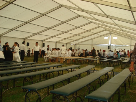 Umplut la capacitate, cortul adăpostea cel puțin 2000 de oameni.
