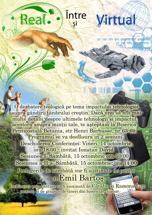 ÎNTRE REAL ŞI VIRTUAL – O dezbatere pe tema impactului tehnologiei asupra gândirii tânărului creştin. Conferinţa se va derula după următorul program: