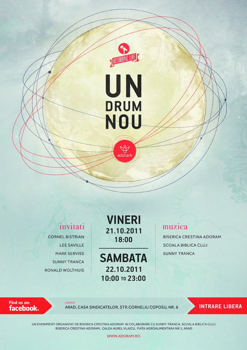 Aceasta va avea loc Casa Sindicatelor în zilele de vineri, 21 octombrie ora 18 și sâmbătă, 22 octombrie de la ora 10 până seara. În cadrul acestei conferințe vom avea o echipă de slujitori care se vor ruga pentru oameni, veți avea posibilitatea să ascultați cuvântul lui Dumnezeu și să participați la diferite seminarii. Sâmbătă seara de la ora 18, echipa de laudă și închinare a Bisericii “Adoram” împreună cu Sunny vom înregistra și un DVD live.