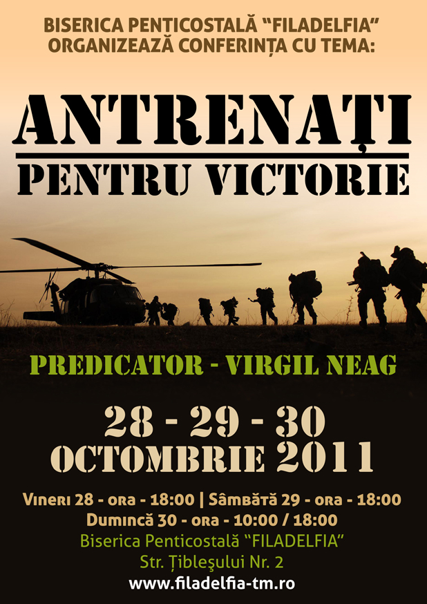 Biserica Penticostalӑ “Filadelfia”, din Timișoara organizeazӑ Conferința cu tema: “Antrenați pentru victorie”.