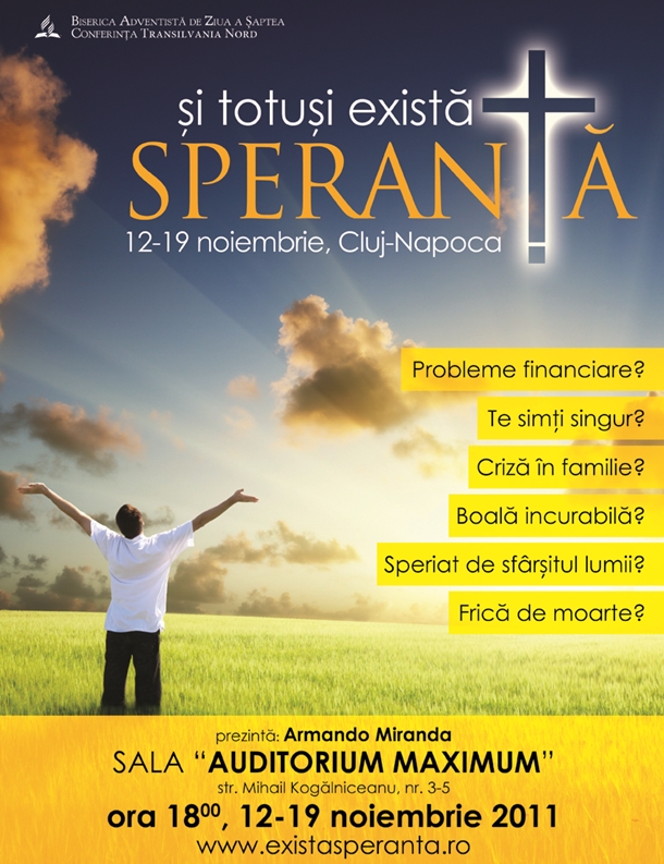 În perioada 12-19 noiembrie 2011 se va desfăşura la Cluj-Napoca campania „și totuși Există Speranţă”, organizată de Biserica Adventistă de Ziua a Şaptea, Conferința Transilvania Nord, în colaborare cu ADRA România, Asociaţia studenţească AMICUS, Liceul Adventist Maranatha, Editura „Viaţă şi Sănătate” şi Institutul de Studii Biblice prin Corespondenţă Sola Scriptura.