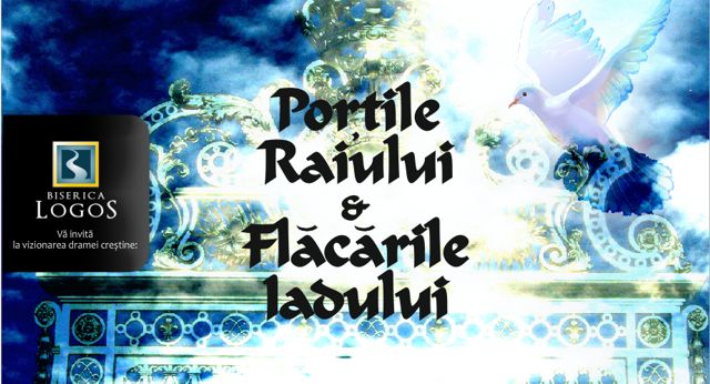 Vineri, 18 NOIEMBRIE 2010 orele 18:00 şi sâmbătă, 19 NOIEMBRIE orele 18:00 va putea fi vizionată în cadrul Complexului Comercial Mercur din cartierul Gheorgheni( str. Detunata nr. 1) drama creştină „Porţile Raiului şi Flăcările Iadului”, organizată de Biserica Penticostală “Logos” din Cluj-Napoca. Intrarea este liberă şi pe toţi cei interesaţi de un moment artistic vă aştept acolo, în calitate de actriţă în această dramă. Nu uitaţi să vă invitaţi şi prietenii!