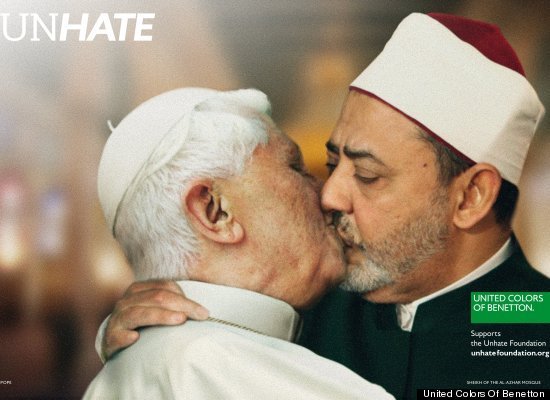 Un cunoscut brand vestimentar a reuşit să şocheze recent printr-o campanie de marketing dezgustătoare, care din păcate şi-a atins scopul, obţinând milioane de vizualizări în întreaga lume. Campania se prezintă sub numele de UNHate (în traducere “Să nu urâm”) şi înfăţişează lideri politici internaţionali şi religioşi sărutându-se. Motivaţia din spatele acestor imagini este de a creşte toleranţa şi de a scădea discriminarea, afirmă compania de haine care se promovează astfel.