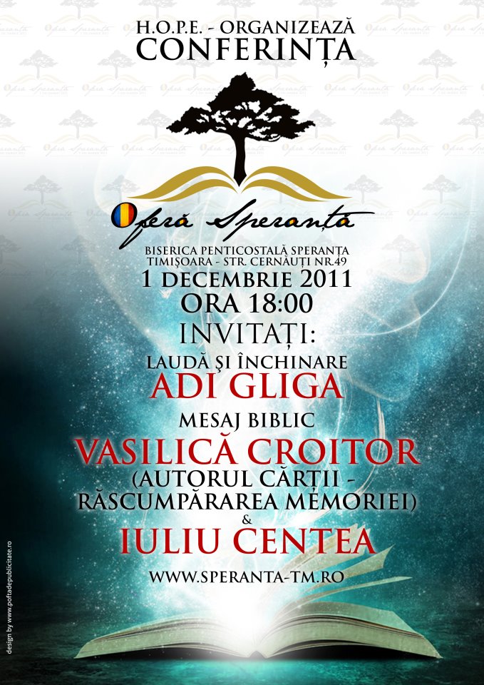 Vino împreună cu noi la o seară de închinare în cadrul căreia vrem să OFERIM SPERANȚĂ susținând proiectul unei familii de misionari, Relu și Tabita, din Smârdioasa, județul Teleorman.