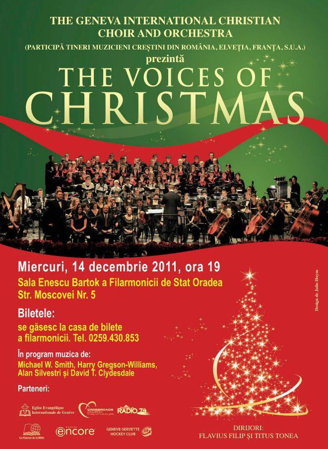 The Geneva International Christian Choir and Orchestra prezintă The Voice of Christmas. Concertul va avea loc în Sala Enescu Bartok a Filarmonicii de Stat Oradea, miercuri, 14 decembrie la orele 19:00.