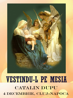 Seria de prelegeri „Vestindu-L pe Mesia” începe în 4 decembrie în Cluj-Napoca, la Biserica “Betania”, orele 18. Cătălin Dupu va mai susţine Conferinţa „Dar din dar se face Rai” sâmbătă, 10 decembrie, la Biserica „Vestea Bună” din acelaşi oraş, cu începere de la orele 17.00. Sâmbătă vor concerta şi grupuri de colindători din municipiu şi judeţul Cluj.