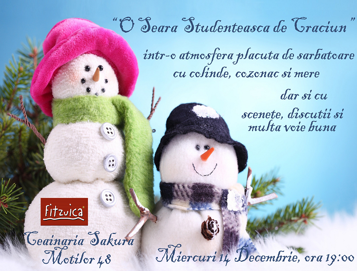 Mâine, 14 decembrie de la ora 19:00 Fitzuica vă invită la o seară studenţească de Crăciun la ceaină ria Sakura (str. Moţilor nr. 48).