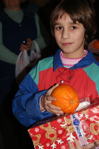 La finalul spectacolului fiecare copil a primit un cadou frumos împachetat sosit tocmai din Irlanda, o portocală și câte o prăjitură special pregătită de surorile din Biserica Creștină Baptistă “Harul”.