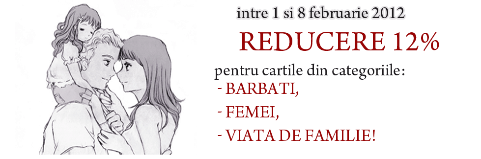 Unii spun că iubirea începe prin a fi binecuvântare şi continuă prin a fi o realizare. Însă o realizare la care trebuie să lucrezi din greu, care îţi cere efort, dar te răsplăteşte pe măsură. Pentru o asemenea realizare ai nevoie de echipament necesar şi de materiale potrivite. Tocmai de aceea, până în 13 februarie 2012, Gramma.ro reduce preţurile la cărţile din categoria “Familie”. Peste 100 de titluri reduse, în fiecare săptămână.