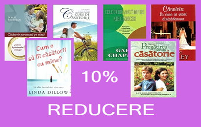 Pentru următoarea săptămână, din 7 până în 14 februarie, dorim să oferim cuplurilor care se pregătesc pentru căsătorie câteva cărţi care să îi ajute şi să îi ghideze în relaţia lor. Toate cărţile din categoria “Căsătorie” vor fi la un preţ redus cu 10% în această perioadă.