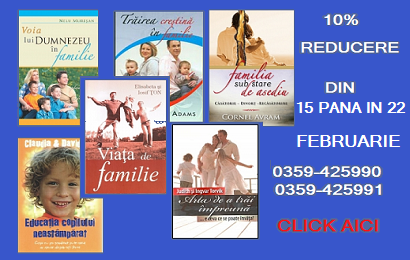 Ai grijă de cei dragi, oferindu-le mediul potrivit în care să se dezvolte. Vrei ca armonia să îţi caracterizeze căminul, dragostea să îţi ţină familia unită şi să fii o binecuvântare? Află cum e posibil din cele peste 30 de cărţi axate pe viaţa de familie pe care ţi le punem la dispoziţie în perioada 15 – 22 februarie la un preţ cu 10% mai mic.