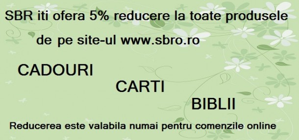 Share Facebook Twitter LinkedIn Pinterest Email Alege cadoul potrivit pentru cei pe care îi iubeşti. Pe 1 martie poţi să alegi orice produs doreşti de pe site-ul Societăţii Biblice, www.sbro.ro, cu reducere de 5%. Reducerea se aplică doar în cazul comenzilor online. Apreciază:Apreciază Încarc...