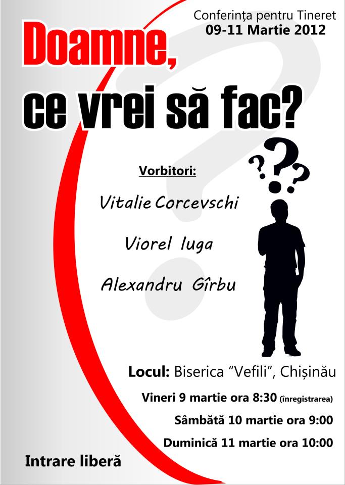 Cea mai importantă conferință a anului 2012 pentru tinerii din Republica Moldova. Nu ratați un loc la Betel. Trei zile caută voia lui Dumnezeu pentru viața ta, alături de alți 1000 de tineri ca tine! Vineri, la 8.30, începe înscrierea la Betel, Poșta Veche.