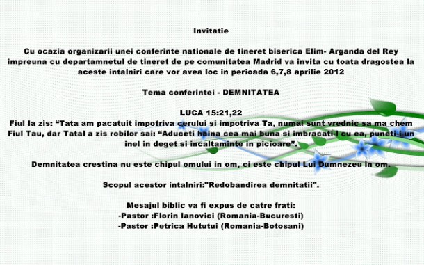 Gândindu-ne că veţi răspunde pozitiv invitaţiei noastre, vă mulţumim şi vă dorim multe binecuvântări din partea lui Dumnezeu.
