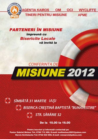 PIM Romania, împreună cu bisericile locale din Iași, vă invită la conferința de misiune 2012.