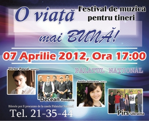 Sâmbătă, 07 aprilie, ne vedem cu toţii la Palatul Naţional din strada Puşkin, Chişinău. În premieră la Chişinău vine trupa Decean din România şi Pirs din Ucraina. Mesajul biblic va fi predicat de pastorul Bisericii “Speranţa” din Arad, Viorel Iuga.