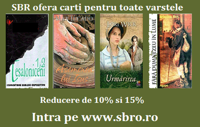 În această săptămână, din 17 până în 22 aprilie, pe www.sbro.ro veți găsi o multitudine de cărți la prețuri promoționale: de la povestiri pentru copii, romane, cărți scrise de Max Lucado și până la cărți teologice.