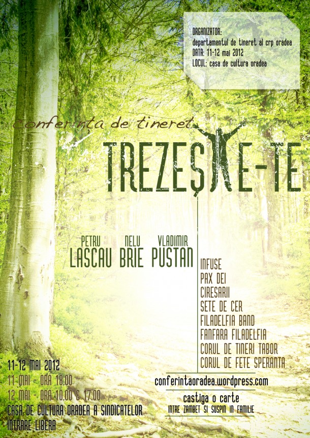 Ȋn perioada 11-12 mai 2012, departamentul de tineret al CRP Oradea va organiza conferinţa pentru tineret “Trezeşte-te”.