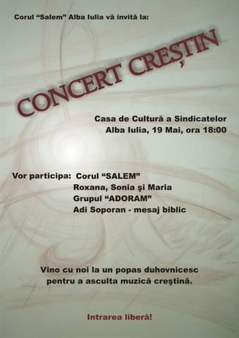 Ȋn data de 19 mai 2012, Alba Iulia va fi gazda unui concert creştin ce se va desfăşura la Casa de Cultură a sindicatelor.