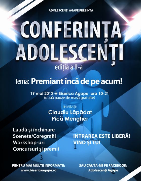 Pentru mai multe detalii legate de conferinţă, puteţi vizita şi pagina web www.bisericaagape.ro