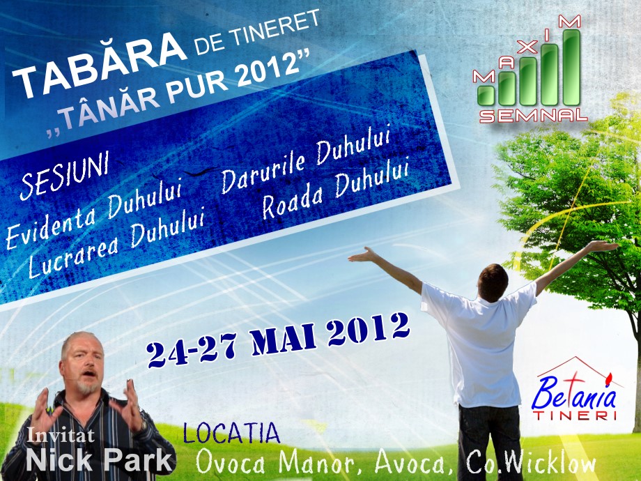 Ȋn perioada 24-27 mai 2012, avem deosebita plăcere de a vă invita să luaţi parte cu noi la a V-a ediţie a taberei pentru tineret “Târăr Pur” ce se va desfăşura în Avoca, Wicklow, Dublin – Irlanda.